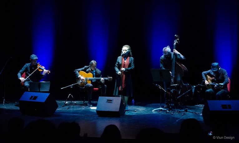 La propuesta que nos ofrece Ole Swing es interesantísima y, por supuesto, apasionante; de un lado el “jazz manouche” o “gypsy jazz” francés del guitarrista Django Reinhardt y el violinista Stéphane Grappelli; y, de otro, la tradición musical española, sobre todo la copla, pero también el pasodoble, el bolero y la música clásica de autores como Falla, Albéniz o Tárrega. Tienen publicados dos discos: “Swing ibérico” (2012) y “Sueño gitano” (2015), con temas esencialmente instrumentales, aunque también incorporan algunas melodías cantadas por intérpretes como Zenet, Antonio Carmona o la cantaora flamenca Eva Durán, experimentada en colaboraciones con músicos de jazz como Chano Domínguez, Carles Benavent o Jorge Pardo. Eva acompañó a Ole Swing en el concierto que éstos últimos ofrecieron, el pasado domingo, en el Festival de Jazz de Madrid (JazzMadrid21).