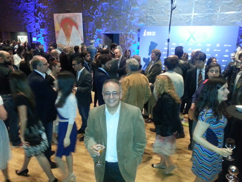 Llegamos a Caixa Forum poco antes de las ocho, aunque no pudimos entrar hasta casi las ocho y media. Nos recibieron con un aperitivo, en el mismo lugar -el hall que antecede al auditorio- donde luego pudimos comer y beber celebrando el resultado. Éramos muchos, yo diría que prácticamente todos los nominados, cada uno con su acompañante, además de otros invitados, periodistas, miembros del jurado, etc. La gala fue presentada por Frank Blanco, conocido por su trabajo en La Sexta, y los premios fueron entregados por personalidades y profesionales de los medios de comunicación.