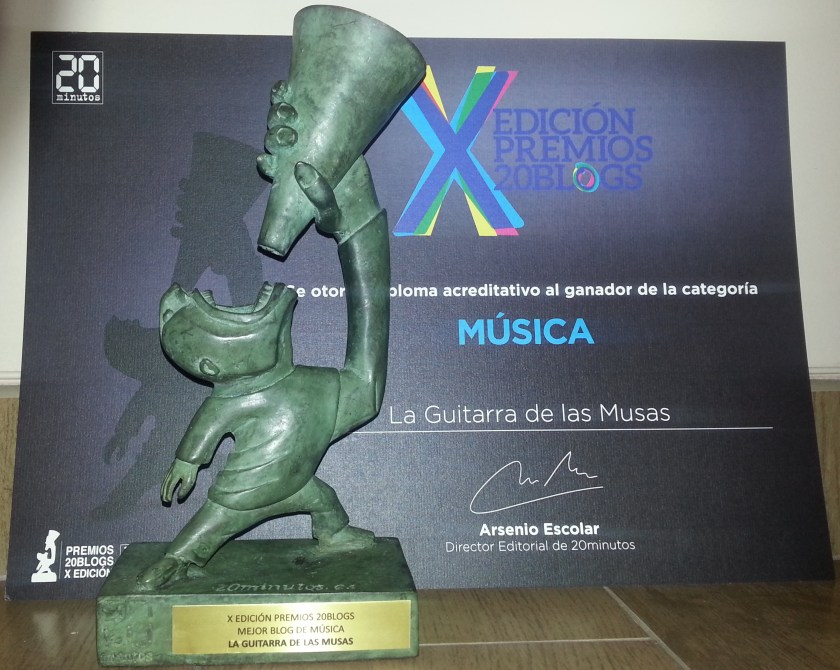 El pasado jueves se celebró la gala de los prestigiosos Premios 20Blogs promovidos por el periódico 20 Minutos que, para esta décima edición, contó con un importante elenco de firmas patrocinadoras, imprescindibles para dar soporte económico a esta iniciativa cultural. Finalizado este acto, tras el cual La Guitarra de las Musas se alzó con el primer puesto en la categoría de «Música», una chica se acercó a mí preguntándome si era un empresario interesado en colaborar económicamente con un proyecto editorial que trataba de poner en marcha. Es evidente que mi edad le debió de confundir; es normal, porque la población bloguera de esa noche se situaba entre los treinta y los cuarenta y tantos, yo era de los finalistas más viejos. El monologuista que amenizó la velada, Nacho García, bromeó en torno al mundo de los blogs, un ecosistema donde hay gente muy moderna haciendo cosas muy vanguardistas. En el fondo, esa era también la idea que yo tenía en torno a este mundillo, un lugar donde el envoltorio tenía tanta o más importancia que los contenidos y donde la gente joven partía con una relativa ventaja. Precisamente por eso pensaba que el jurado de estos premios, personas experimentadas en el mundo de la cultura, la comunicación y las nuevas tendencias, nunca se fijaría en un blog sin artificio alguno, quizás austero en exceso, sin apenas imágenes, sustentado únicamente a base de música y palabras. He de reconocer que estaba equivocado.