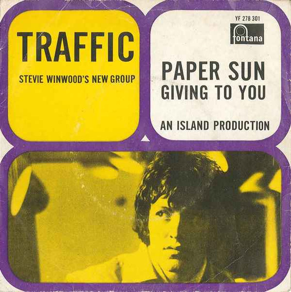 Traffic fue un grupo inglés de pop y rock psicodélico formado, en 1967, por Dave Mason (guitarra, mellotrón, sitar), Chris Wood (flauta, saxo, órgano, voz), Jim Capaldi (batería, percusión, voz) y Steve Winwood (voz, teclados, guitarras). La banda se creó después de que éste último abandonara The Spencer Davis Group, formación a la que ingresó cuando tenía catorce años, allá por 1963; a este grupo ya le dedicamos una entrada hace unos cuantos años. El nombre de Traffic se le ocurrió a Jim Capaldi, cuando los cuatro miembros esperaban para cruzar una calle en Dorchester (Inglaterra). El primer álbum (“Mr. Fantasy”, 1967) lo grabaron en los Olympic Studios de Londres, aunque las canciones que formaron parte de él ya las habían trabajado en una casa de campo que habían alquilado para tal propósito. Meses antes de sacar al mercado este álbum, publicaron tres singles, que no fueron incluidos en este Lp de debut aunque sí en la edición de “Mr Fantasy” en CD del año 2000; el primero de estos sencillos se tituló “Paper Sun” (con “Givin to You” en la cara B, un excelente tema). Traffic se disolvió en 1974 ó 1975, después de haber grabado siete álbumes de estudio y dos directos; si queréis saber más sobre estos discos, os recomiendo esta entrada del compañero lrotula, en la que nos habla de estos álbumes.